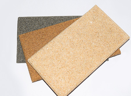 微粒材料是一種新型綠色裝飾材料,具備優(yōu)異的聲學性和物理性能。該材料是以天然砂?;蚪洯h(huán)保處理的固廢顆粒為骨料,以環(huán)保膠凝劑,通過壓振工藝,生產的具有大量相互連通的微小空隙的多孔材料。